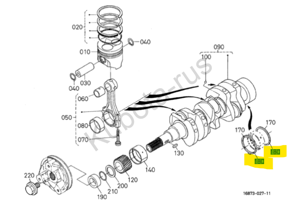 Полукольца коленвала (нижние) (std) Кубота Z482 1526123540, 1526123543