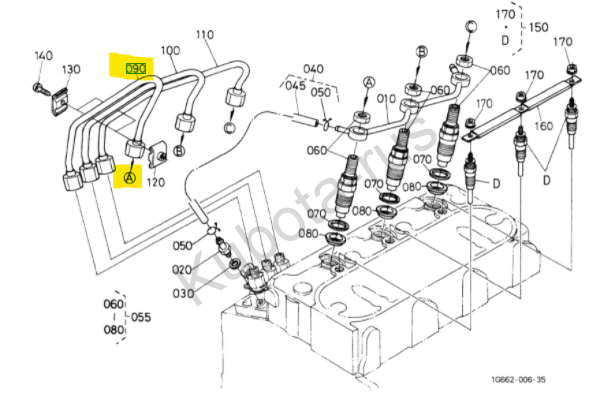 Трубка топливная (А) для двигателя Kubota D905 16271-53712
