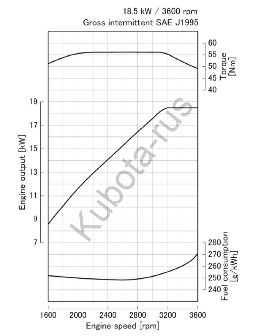 | Номинальная мощность, кВт (л.с.) / об.мин. | 18,5 (24,8) при 3600 |