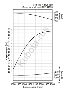 | Номинальная мощность, кВт (л.с.) / об.мин. | 36,5 (48,9) при 2700 |