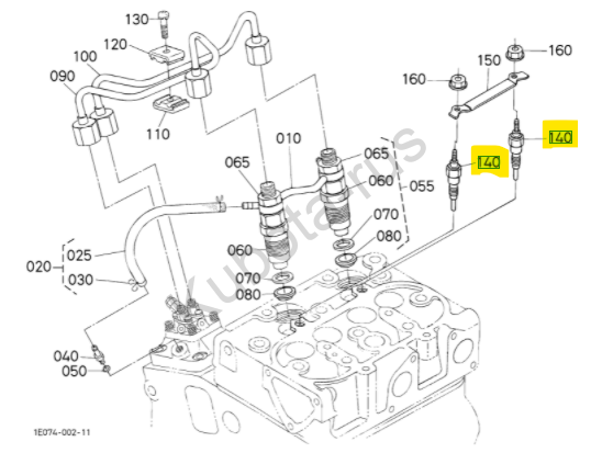 Свеча накаливания (16851-65512) (1685165512) для двигателя Kubota Z482