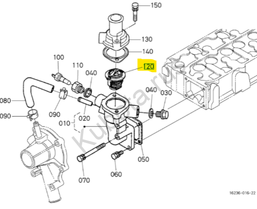 Термостат (1943473014, 1943473015) для двигателя Kubota V1505
